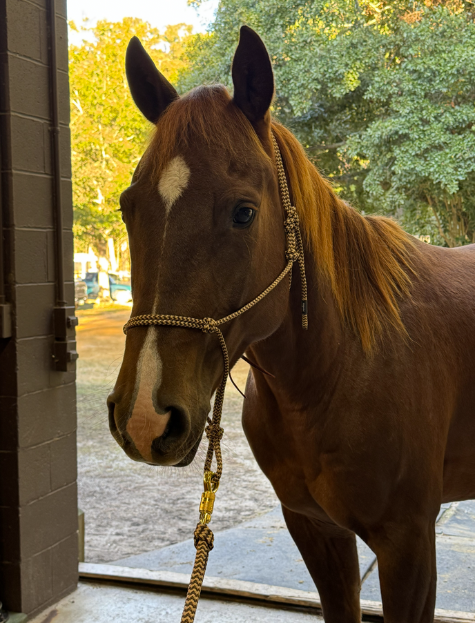 Samen met de Parelli 12ft line (touw van zo'n 3,7m lang) helpt een touwhalster mee aan een betere communicatie met je paard en daardoor meer veiligheid vanop de grond.