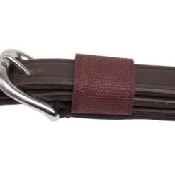 Ce connecteur de rênes en cuir est muni d'une boucle avec velcro pour maintenir les rênes bien rangées. Il est principalement utilisé pour l'équitation en tandem et à quatre chevaux.