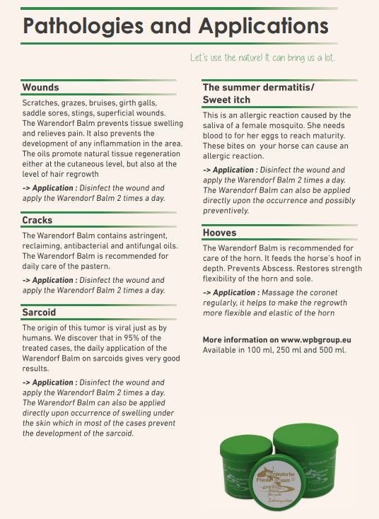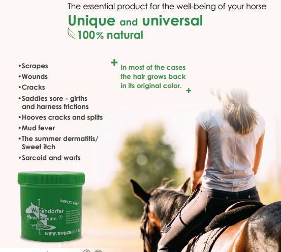 Warendorf balsem is uniek en 100% natuurlijk, een onmisbaar product in je paardenapotheek.