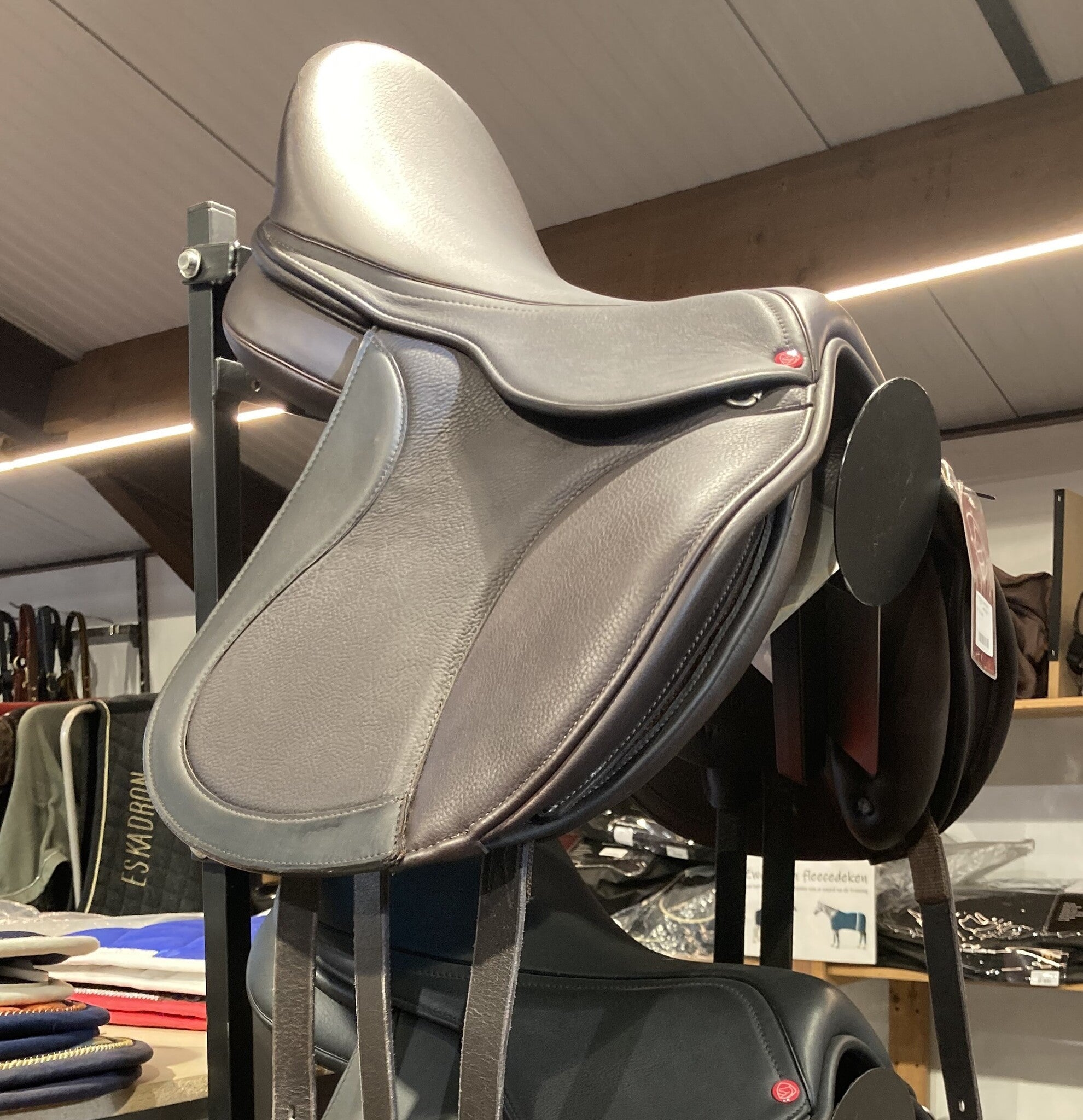 De combinatie van zadelflappen welke iets naar voren zijn gemonteerd en Engelse girthstraps, maakt dit zadel een perfecte combinatie voor diegenen die op zoek zijn naar een allround zadel en dressuurruiters met een kortere beenlengte, die een goed beencontact zullen vinden vanwege de kortere zadel flappen.